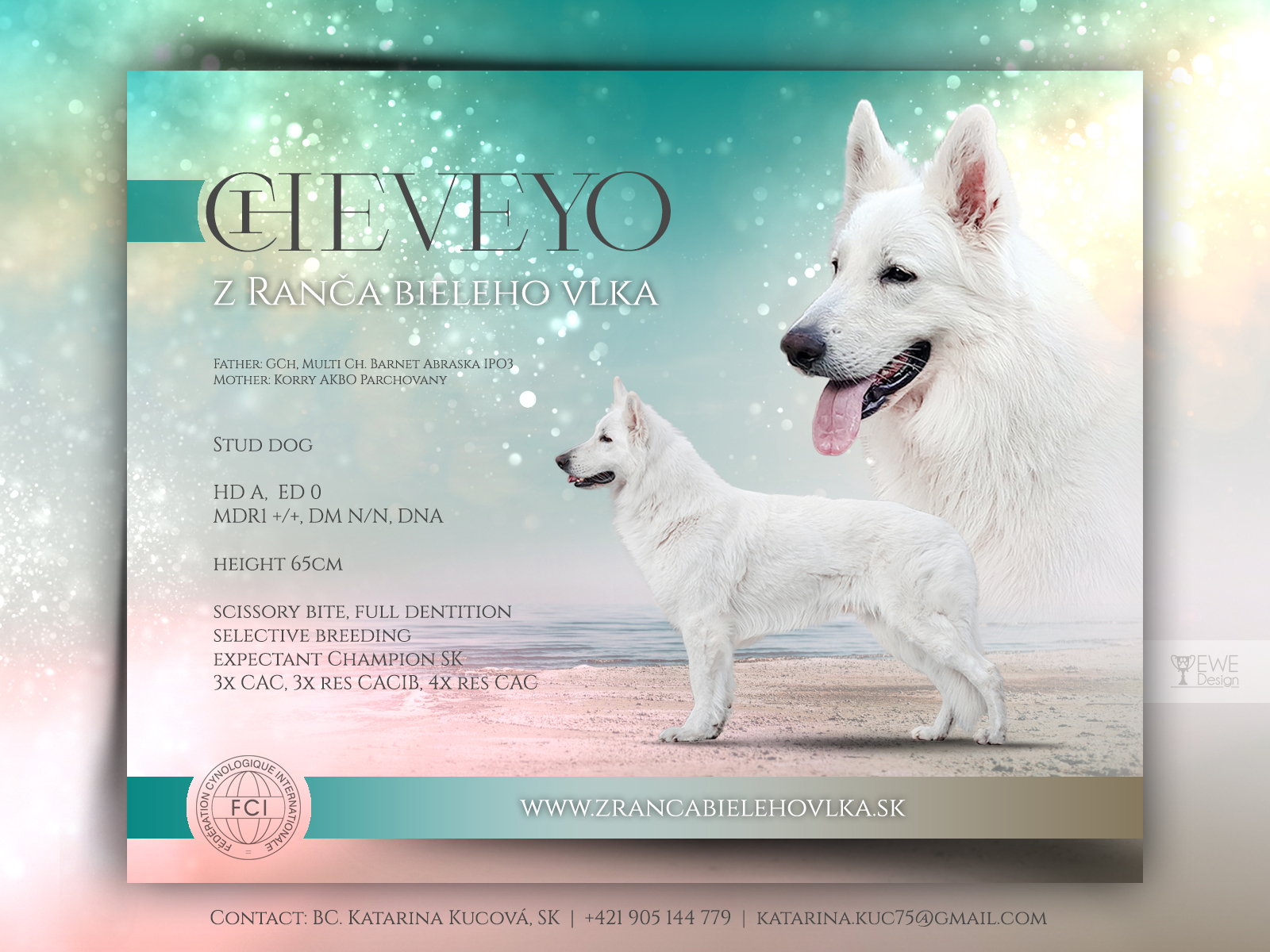 Máme potvrdenú graviditu, takže s veľkou radosťou očakávame v prvej polovici septembra narodenie bielych pokladíkov.:-) Predbežná rezervácia je možná. Záväzná rezervácia šteniatka bude možná až po narodení a vyplatení rezervačnej zálohy.